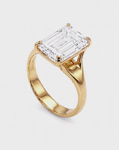 Pure sophistication. The emerald cut diamond captivates with sleek lines and quiet brilliance, set in rich 14K yellow gold with a sculptural high polish finish. Powerful yet elegant, this ring feels timeless, elevated, and irresistibly luxurious.
